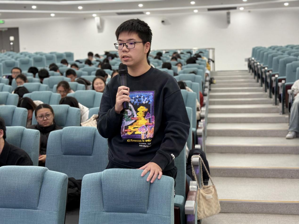 在自由交流环节,同学们踊跃提问,现场气氛热烈。嘉宾就职业选择、实习准备、学历提升、行业竞争等话题与同学们展开互动,耐心解答大家的困惑,并鼓励同学们保持学习热情,坚守专业初心。