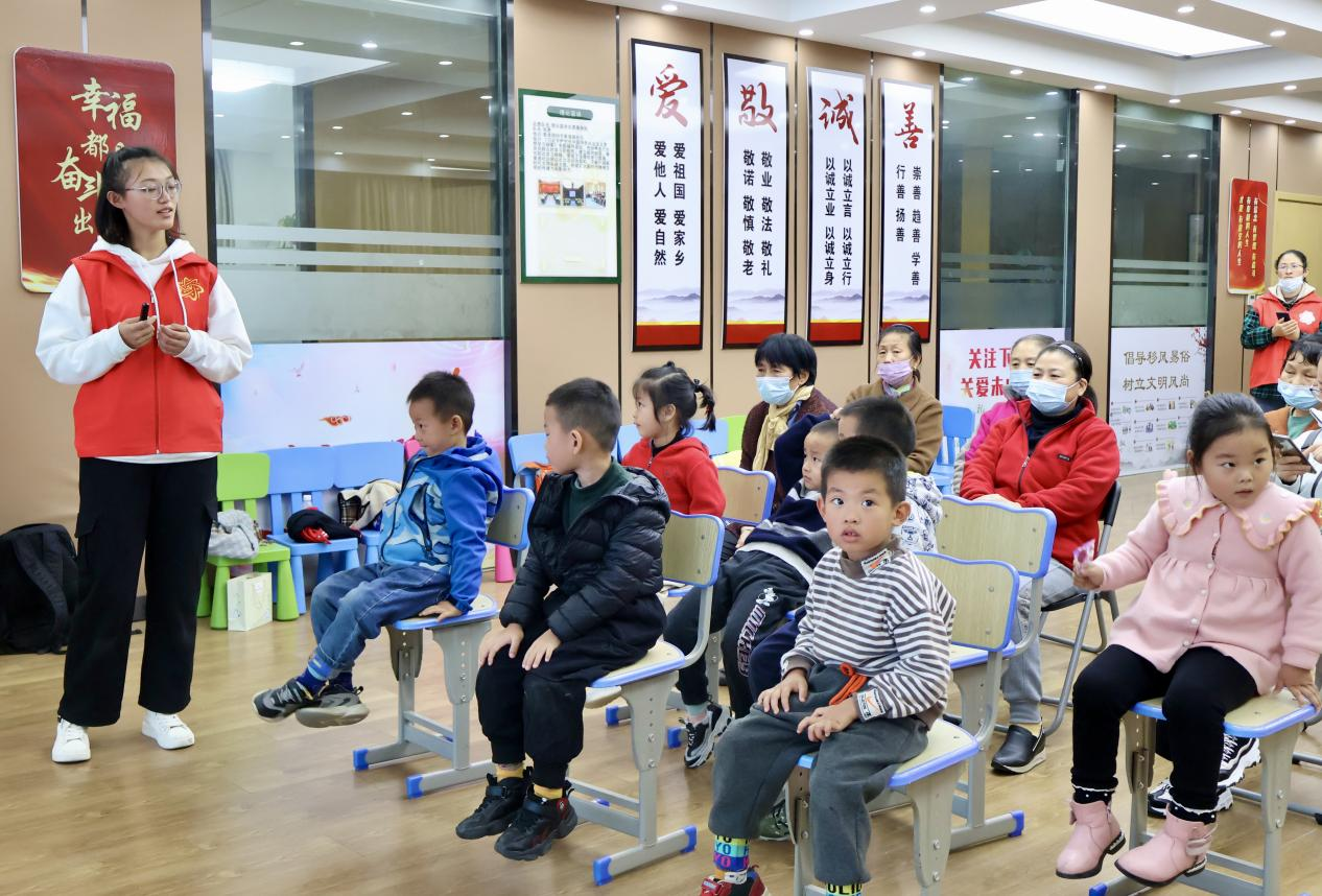 11月18日下午,人文学院联合江宁区秦淮社区在新时代文明实践站开展了“星奔川鹜载明礼,风朗气清践文明”礼仪教育宣讲活动,人文学院青年志愿者协会的志愿者们组织参与了本次活动。(作者:韩煦、周璇;供图:周璇)