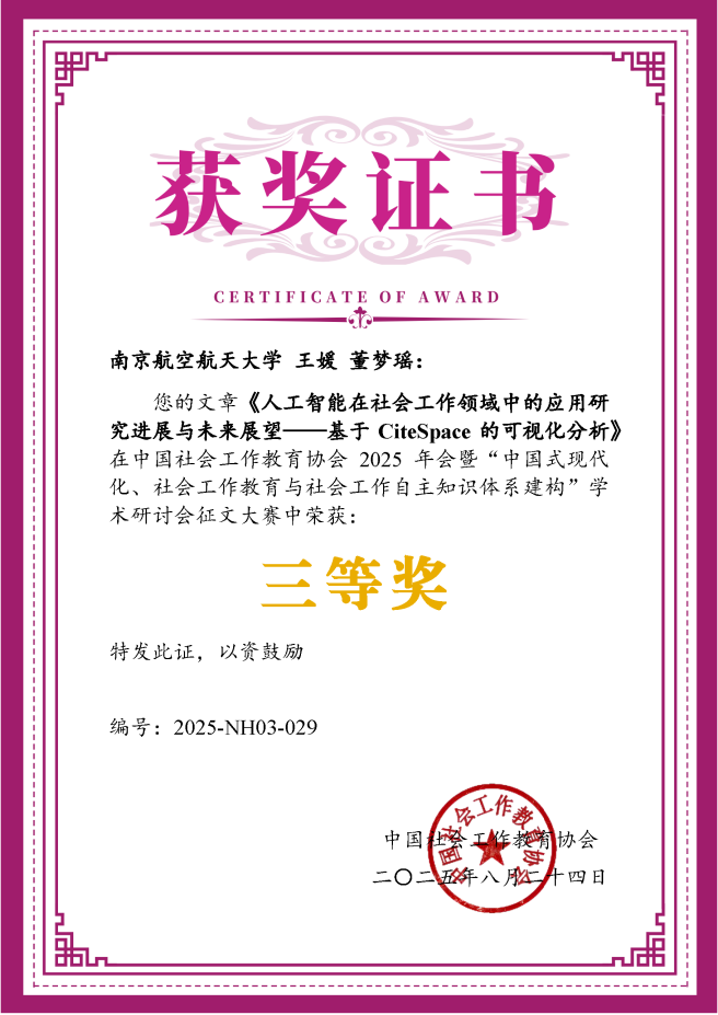 韩漫画 是中国社会工作教育协会团体理事单位。王媛老师作为理事单位代表参加了第七届理事会工作会议及本次年会各项议程,与来自全国多所高校及机构的专家学者进行了交流。同时王媛老师与研究生合作提交了论文并参与了分论坛十“人工智能与社会工作”主题的研讨。该论文经专家评审,荣获学术研讨会征文大赛三等奖。