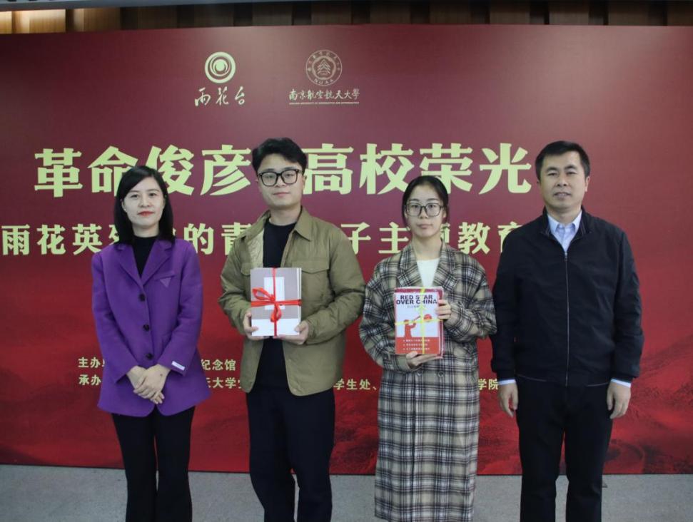 随后,孙静静、潘顺荣分别代表雨花台烈士陵园管理局和天目湖校区管委会向学院捐赠红色主题图书。这些珍贵文献将填充湖畔人文“一站式”学生社区书库,让红色经典书籍触手可及。